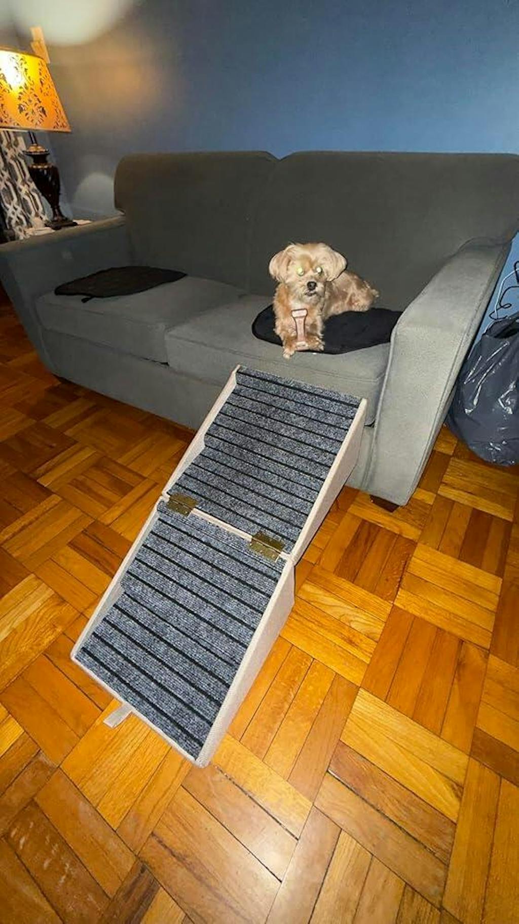 • I’ve been looking for some kind of aid/steps for my adult Shorkie so he wouldn’t hurt himself jumping off the couch and these are the perfect steps.