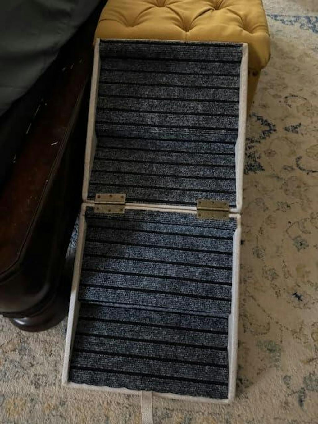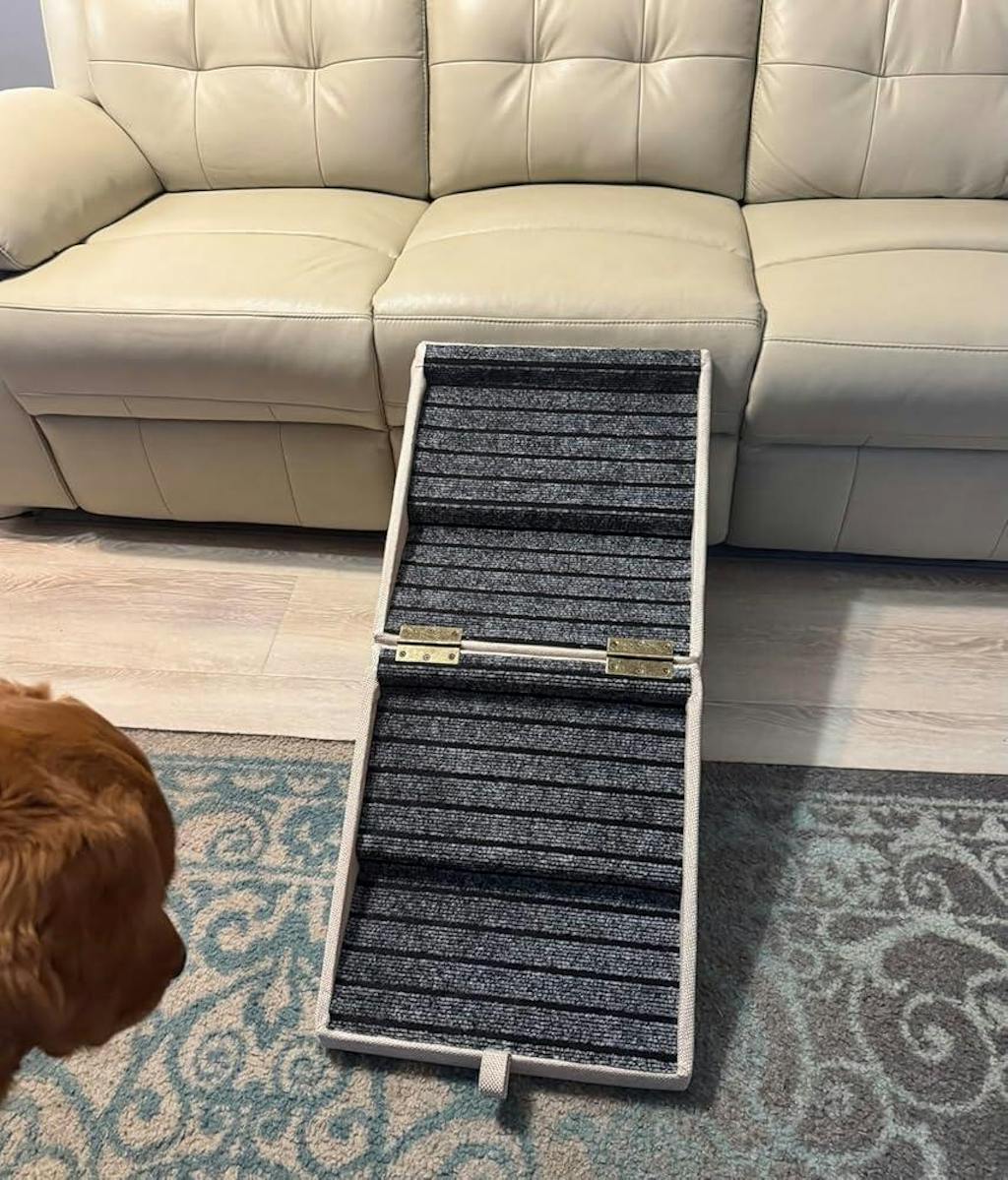 • These dog steps are NICE! I love that it folds up to hide the steps when not in use. It’s made VERY well & so sturdy! Definitely recommend.